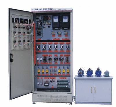 該裝置按標準電氣控制柜設(shè)計制造規(guī)格,充分利用雙面位置,柜內(nèi)裝有完成各種照明電路所需的單相電度表、日光燈、單聯(lián)開關(guān)、插座、感應(yīng)開關(guān)、漏電開關(guān)等,以及電氣控制所需要的多種低壓電器,如漏電斷路器、熔斷器、電流互感器、交流接觸器、時間繼電器、熱繼電器、中間繼電器、行程開關(guān)、按鈕、信號燈、轉(zhuǎn)換開關(guān)、電壓表、電流表、功率表及電度表等,為了延長電器使用壽命,各電器的接點都與接線端子相連,再由接線端子與被控制電氣連接。