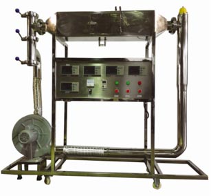 洞道室:L=1200,透視窗,小拉門(mén)。室內(nèi)與預(yù)熱段間多層不銹鋼均布器,干球、濕球溫度測(cè)點(diǎn),載物盤(pán)下連稱(chēng)重傳感器。保溫層厚20,石棉材料。