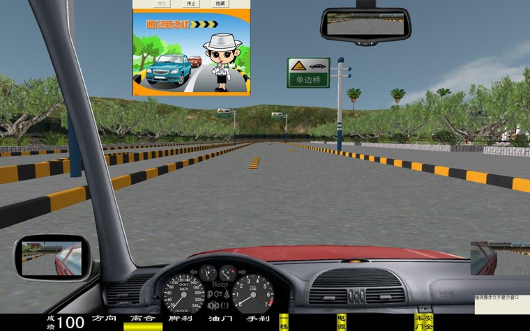 華育寬頻 HYM-9 型汽車駕駛模擬器是一種 80 度視角配 22 寸液晶彩顯的多功能新一代的主被動(dòng)式汽車駕駛模擬器。它突破了原來在行駛十字路口向左拐的視線盲區(qū),行起車來更加方便逼真, 從而清楚的觀察車輛與路面的位置關(guān)系。是目前市場上絕對最新版的汽車駕駛模擬器軟件。 一、界面顯示 新增加 有: 轉(zhuǎn)向、 油門、 剎車、 離合器深淺進(jìn)度; 檔位、 訓(xùn)練成績, 后視鏡(左、右、中)、 場景地圖顯示; 界面儀表盤上顯示有: 車速表、 發(fā)動(dòng)機(jī)轉(zhuǎn)速表、 大燈、(遠(yuǎn)光燈、近光燈、視寬燈)、 轉(zhuǎn)向燈、 安全帶提示燈、 車門關(guān)閉提示燈、 機(jī)油燈、 電瓶警告燈等。 在訓(xùn)練過程中、通過雙擊鼠標(biāo)、可實(shí)現(xiàn)正視和俯視圖像駕駛之間切換。 三、本模擬系統(tǒng)界面里不同車型之間自由轉(zhuǎn)換,其車型有: 小轎車、 吉普車、 無級變速車(自動(dòng)檔)、 農(nóng)用車、 大貨車、 大客車、 (車型等多達(dá)六種學(xué)員可以在模擬器上體會(huì)不同車型的駕駛體會(huì)與樂趣) 四、學(xué)員可以根據(jù)自己駕駛的熟練程度選項(xiàng)訓(xùn)練,分三級訓(xùn)練,即 1 、初級駕駛; 2 、中級駕駛; 3 、高級駕駛訓(xùn)練: 初級駕駛訓(xùn)練 :初級駕駛可分為六種車型和三種練習(xí)方法,即 1 、被動(dòng)駕駛; 2 、原地訓(xùn)練; 3 、簡易道路等訓(xùn)練 中級駕駛訓(xùn)練 :可選擇場景內(nèi)的相應(yīng)功能訓(xùn)練:車輛的數(shù)量、車型、道路、天氣等。 高級駕駛訓(xùn)練 :可選車輛的數(shù)量、車型、道路、天氣及 交通部規(guī)定的九項(xiàng)專項(xiàng)訓(xùn)練 即: 1 通過連續(xù)障礙、 2 通過單邊橋、 3 直角轉(zhuǎn)彎、 4 側(cè)方位停車、 5 上坡定點(diǎn)停車與坡道起步、 6 限速通過限寬門、 7 百米 加減檔、 8 起伏路駕駛、 9 曲線行駛等 。場景內(nèi)最多可達(dá) 60 輛其他車輛,達(dá)到模擬逼真的交通流狀況。 訓(xùn)練氣候 面有:“