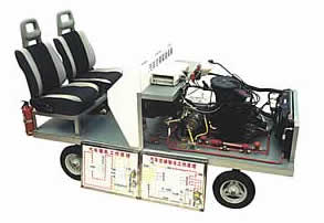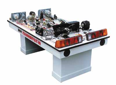 汽車仿真電路學生實習臺是按照汽車標準電器線路安裝而成。外型美觀,操作方便,透明直觀。全車電線束、儀表盤、各種開關(guān)、前后燈光分電器、點火線圈、調(diào)節(jié)器、繼電器、中央線路板,中央控制器、節(jié)氣門組件,均用實物裝成,各缸點火清楚可見,各缸噴油燈光顯示、轉(zhuǎn)速可快慢調(diào)節(jié),自動充電,電噴、ABS各傳感器和招待器均可用萬用表測試電壓或電流信號,(其中電噴實驗臺可用試管測量噴油量大小)。教師在實驗臺上任何部件制造故障由學生自行排除,拆掉各路保險絲、繼電器、臺面上電器接頭,由學生按照電路圖自行安裝可達到實習目的.