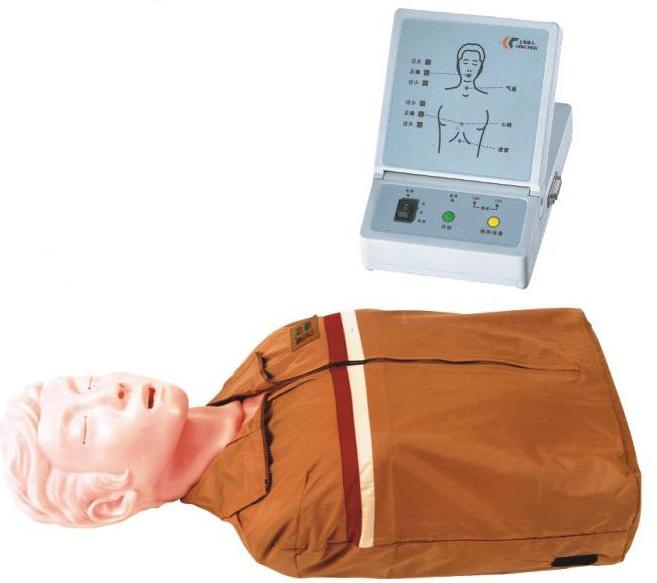 心肺復(fù)蘇,國際代稱CPR。在生活中,健康人由于心臟驟停(如觸電、溺水、高空作業(yè)事故、交通事故、旅游意外、心臟疾病、心肌梗塞、自然災(zāi)害、意外事故等所造成的心臟驟停),而必須采取胸外按壓、人工口鼻呼吸、心內(nèi)注射、氣道放開等搶救過程。使病人追短時(shí)間內(nèi)得救。在搶救過程中胸外按壓位置,按壓強(qiáng)度是否正確,人工呼吸吹入的吹氣量是否足夠等規(guī)范動(dòng)作是否正確,是搶救病人是否成功的關(guān)健。因此,在系列搶救過程中,必須要掌握心肺復(fù)蘇技術(shù)。模擬胸外按壓、人工呼吸、心內(nèi)注射、頸動(dòng)脈模擬搏動(dòng)、瞳孔由一只散大與一只縮小的比較認(rèn)識(shí),達(dá)到掌握操作訓(xùn)練心肺復(fù)蘇術(shù)的基本要求。對操作正確與否,有光電信號(hào)顯示、數(shù)碼顯示等功能,它是訓(xùn)練搶救人員進(jìn)行心肺急救技術(shù)訓(xùn)練的要求的模擬機(jī)。